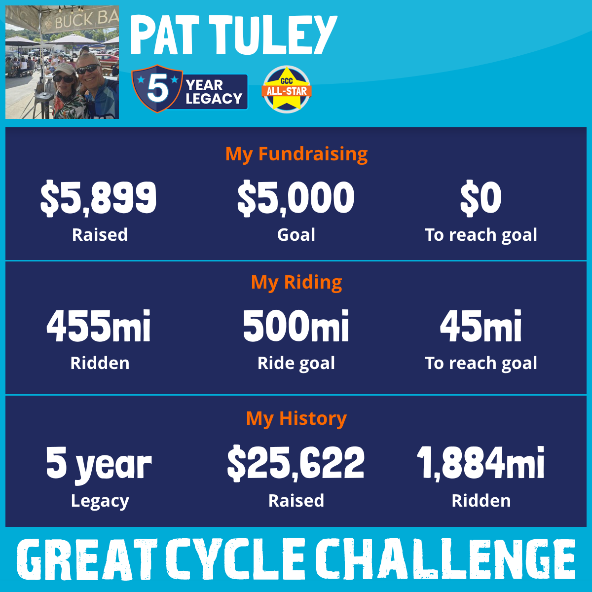This September 2025 marks my FIFTH year with the Great Cycling Challenge. I am grateful to be able to contribute to this great cause, and thank all of you who have supported me and the Childrens Cancer Research Fund with your donations. To date, thanks to the support of all of my sponsors, I have raised almost $20,000 over the last four years and look forward to eclipsing that mark this year with your help!