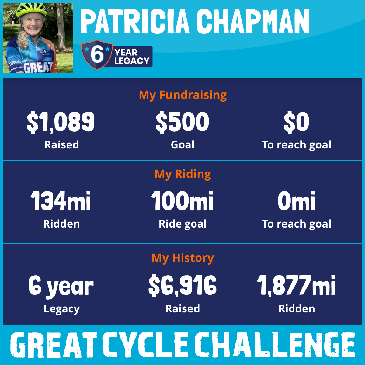 134 mi Ridden$1,089 Raised2025