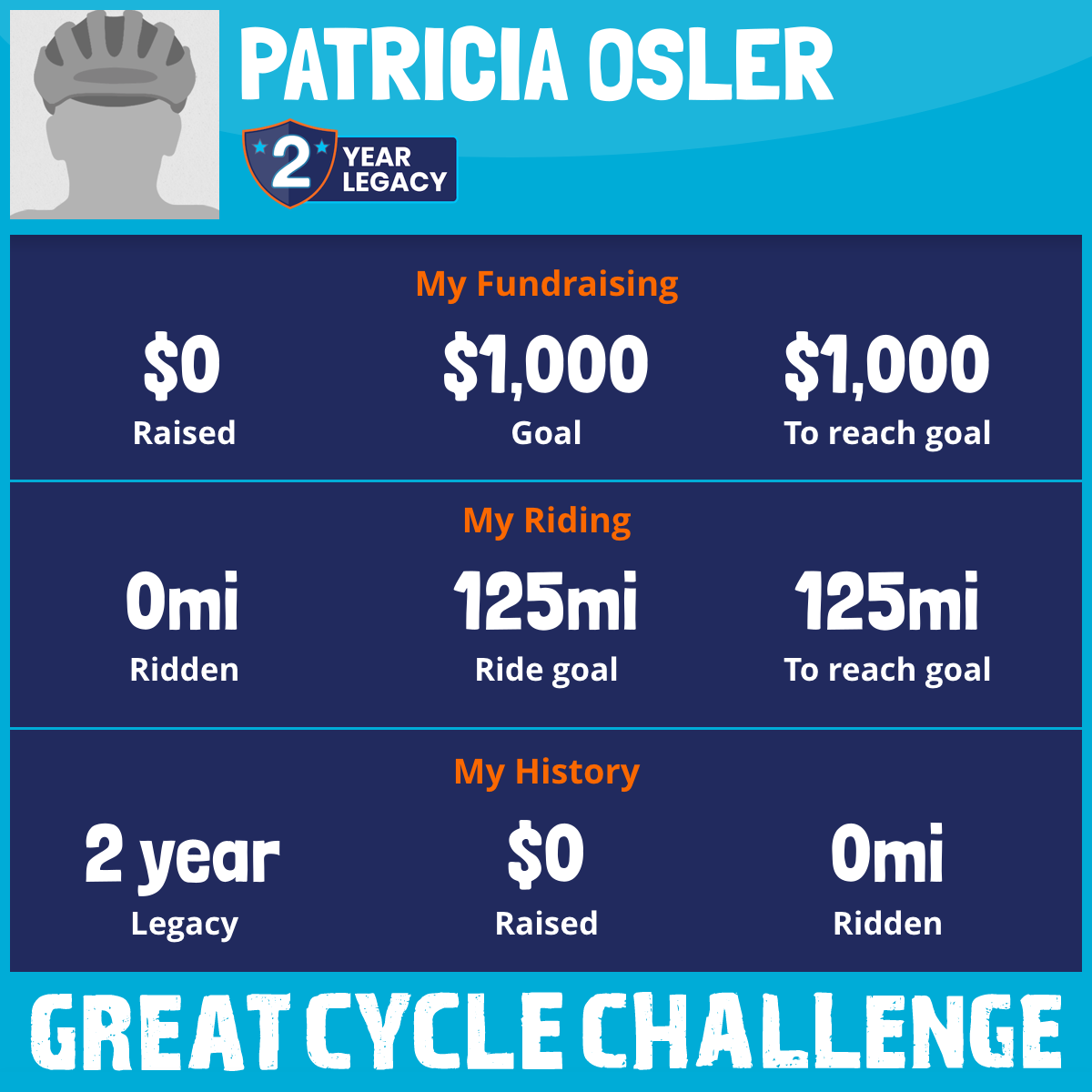 I am riding 125 mi for BRIAN OSLER SR. Please sponsor me and support my challenge to fight kids' cancer and save little lives.