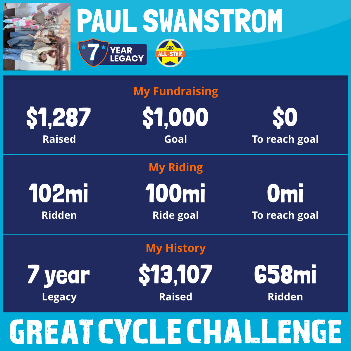 102 mi Ridden$1,287 Raised2025