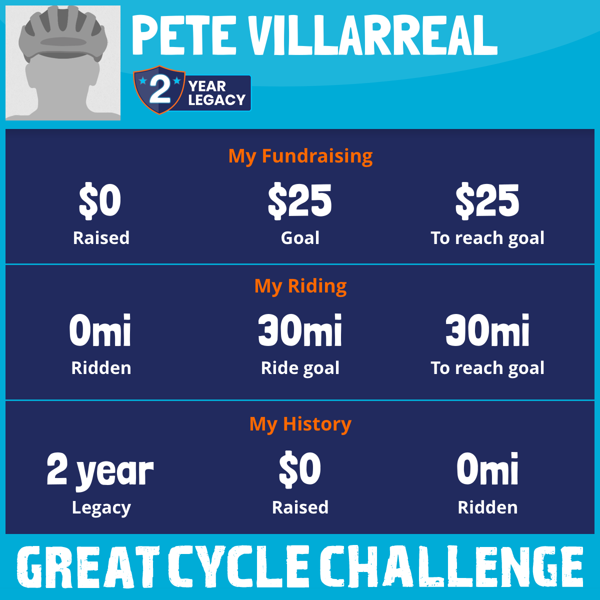 I am riding 30 mi for Jose Villarreal. Please sponsor me and support my challenge to fight kids' cancer and save little lives.