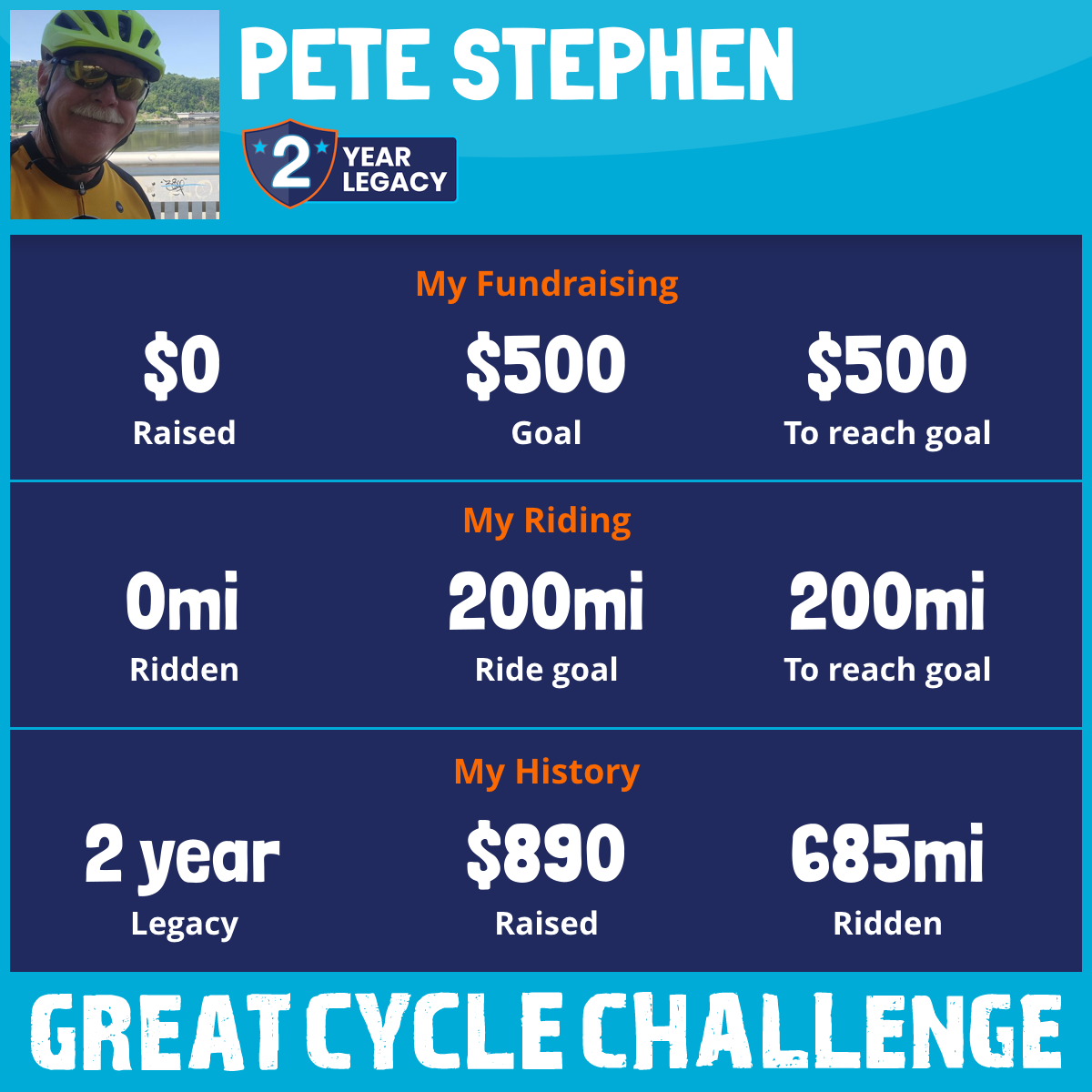 I've raised $0 My goal is $500 Donate Now