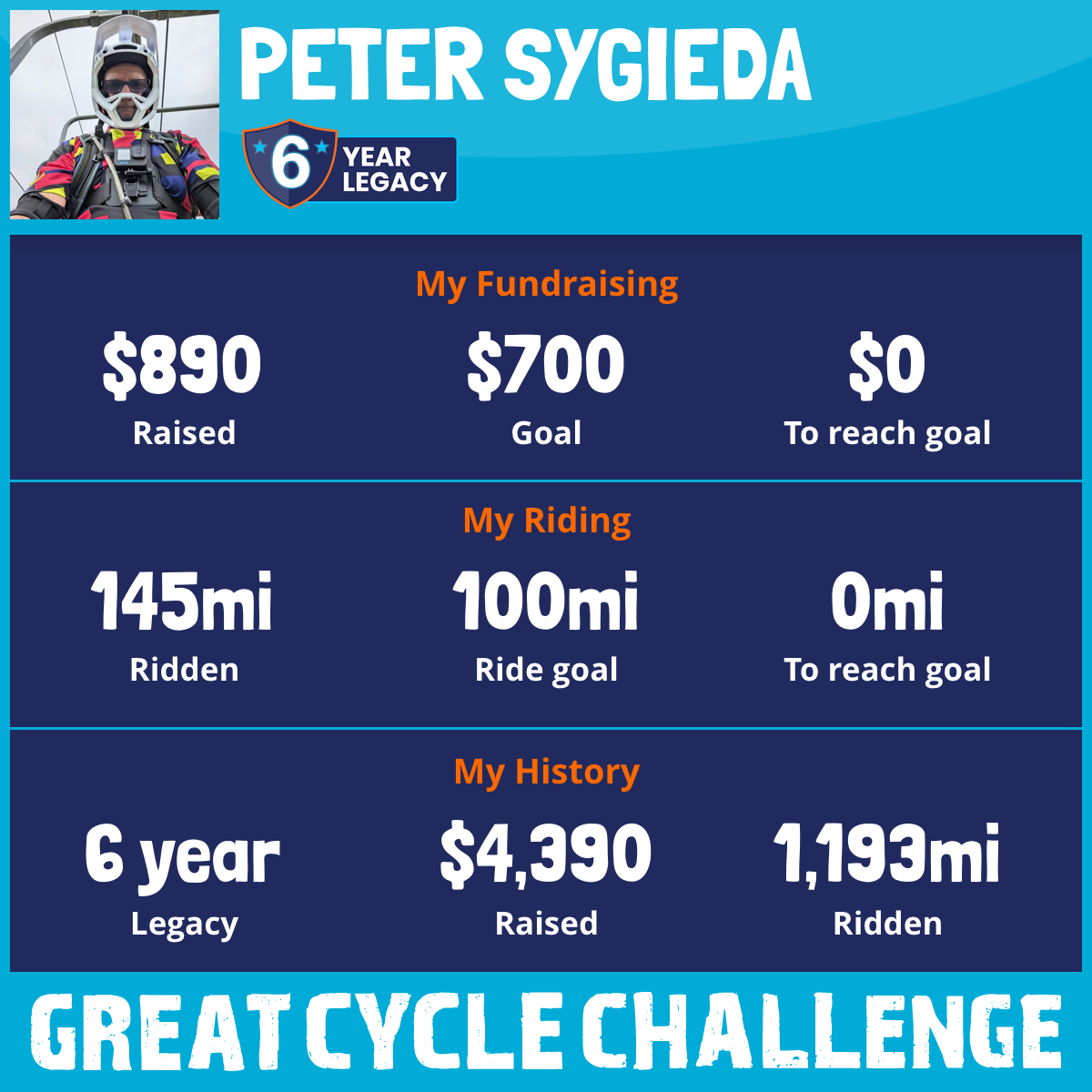 I am riding 100 mi for my friend, Wally. Please sponsor me and support my challenge to fight kids' cancer and save little lives.