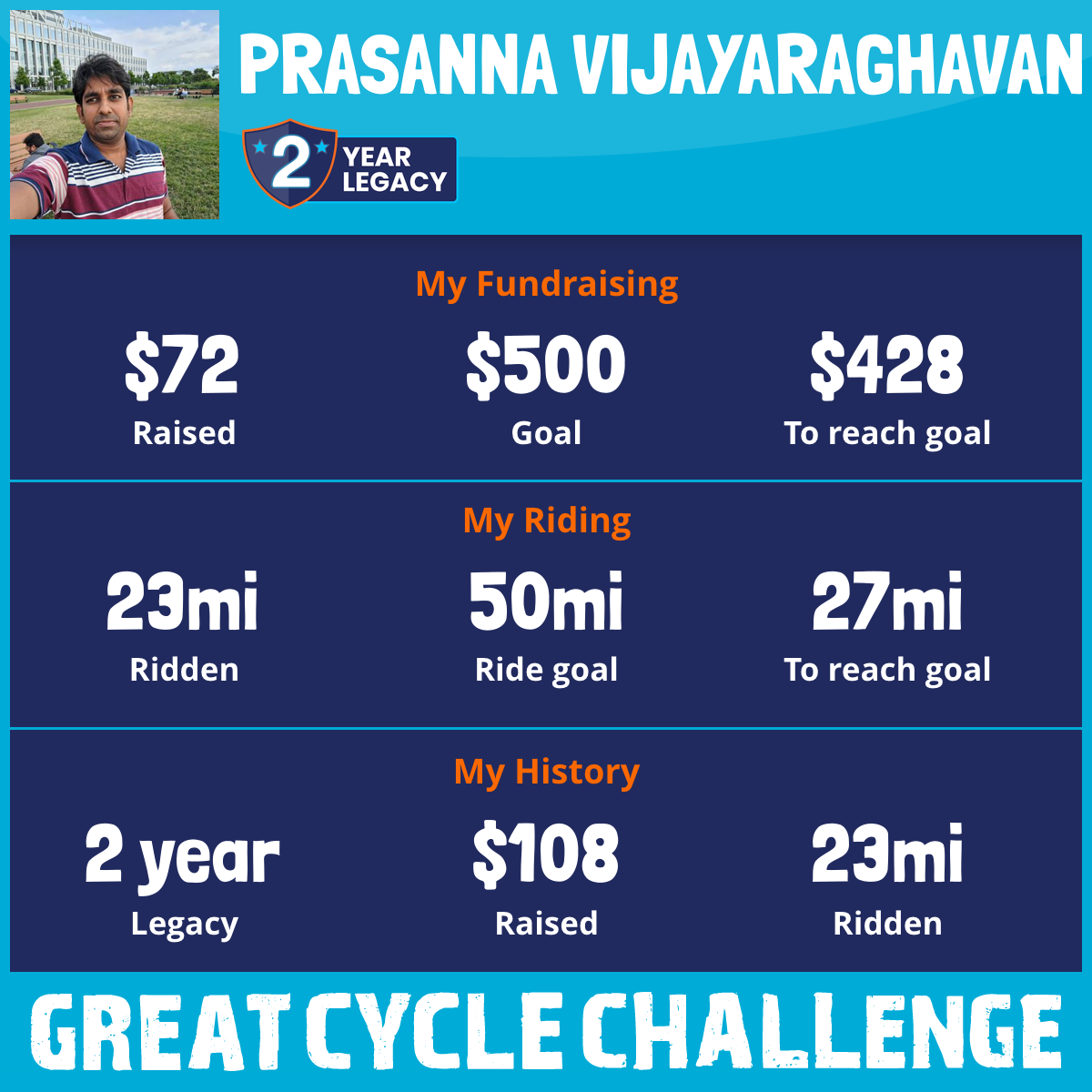23 mi Ridden$72 Raised2025