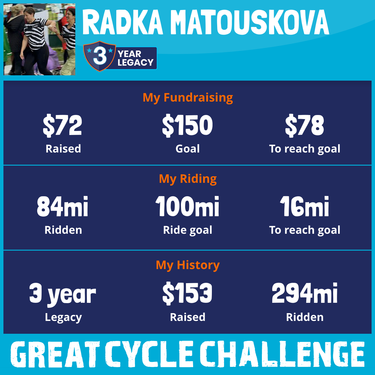 I am riding 100 mi to fight kids' cancer and save little lives. Please sponsor me to support my challenge!