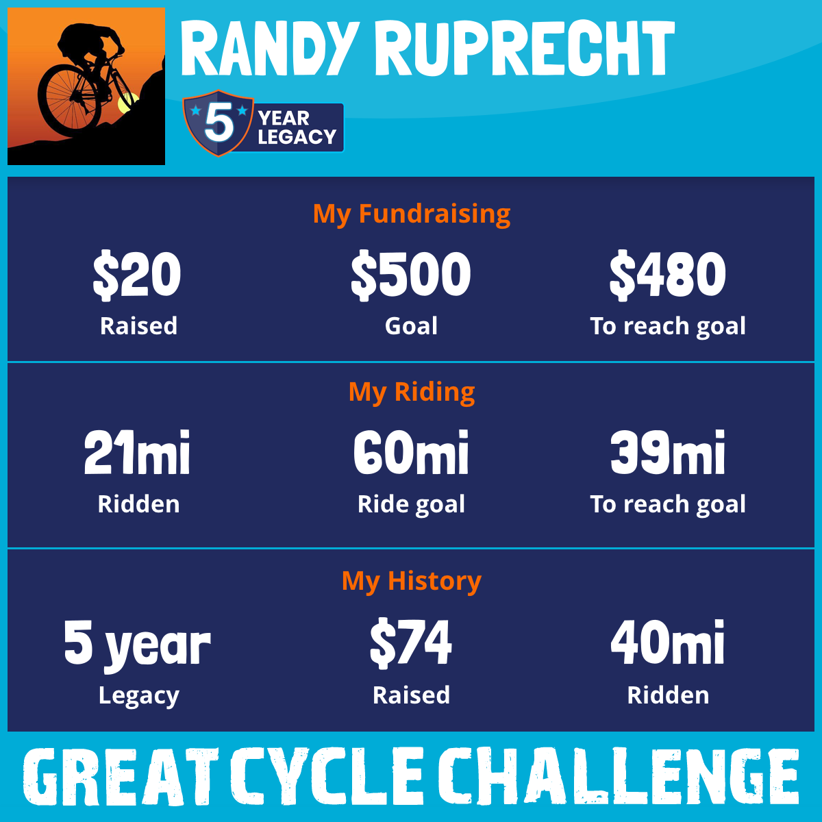 I am riding 60mi in memory of my mum, Kathy Ruprecht. Please sponsor me and support my challenge to fight kids' cancer and save little lives.