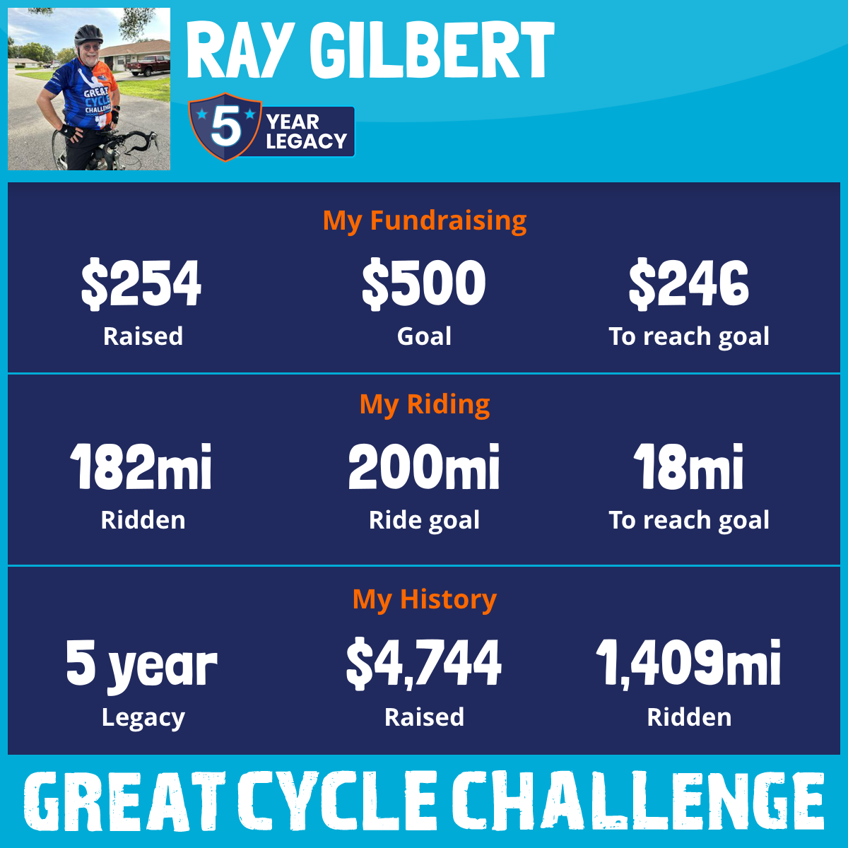 182 mi Ridden$254 Raised2025