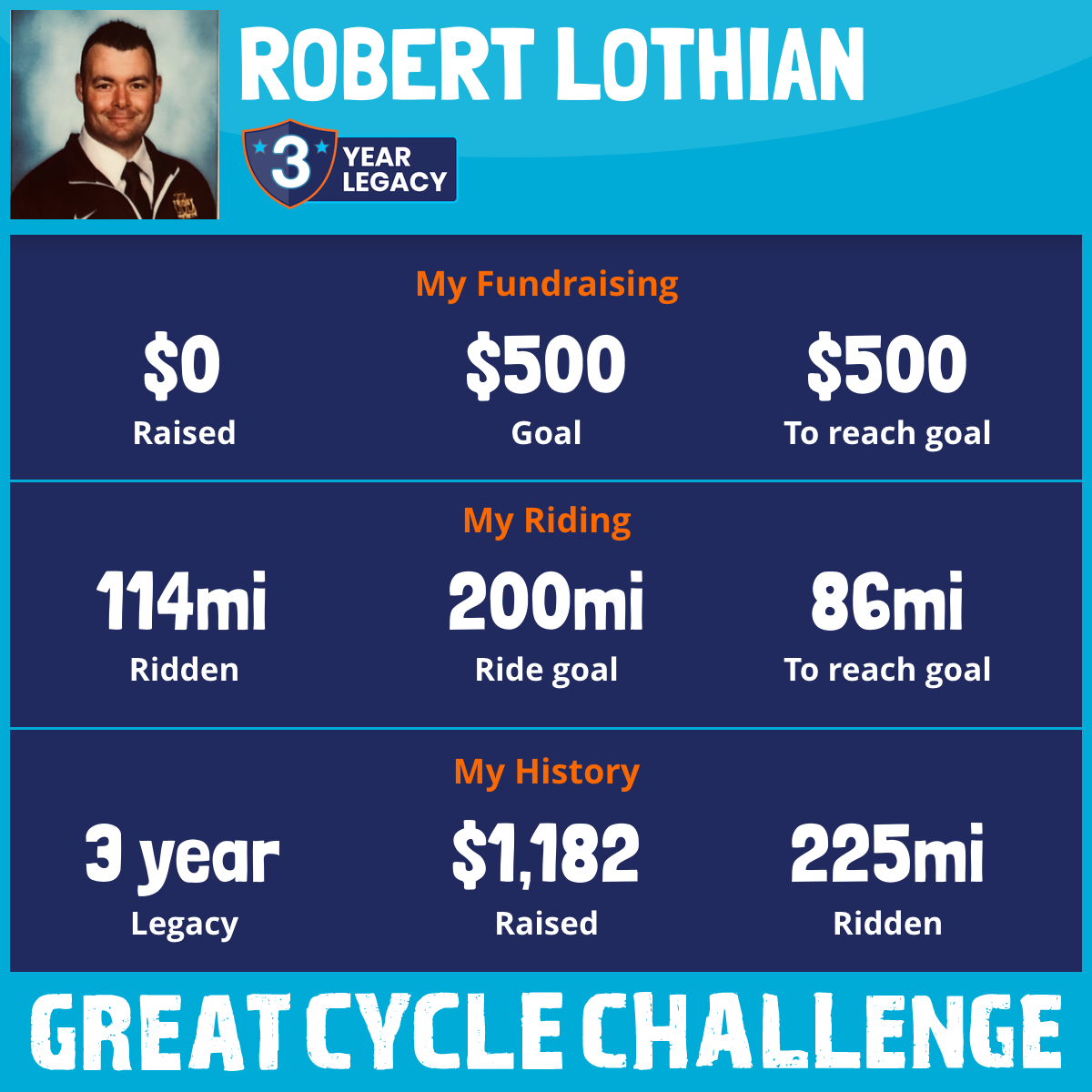 I am riding 200 mi in memory of Robert Zilka. Please sponsor me and support my challenge to fight kids' cancer and save little lives.
