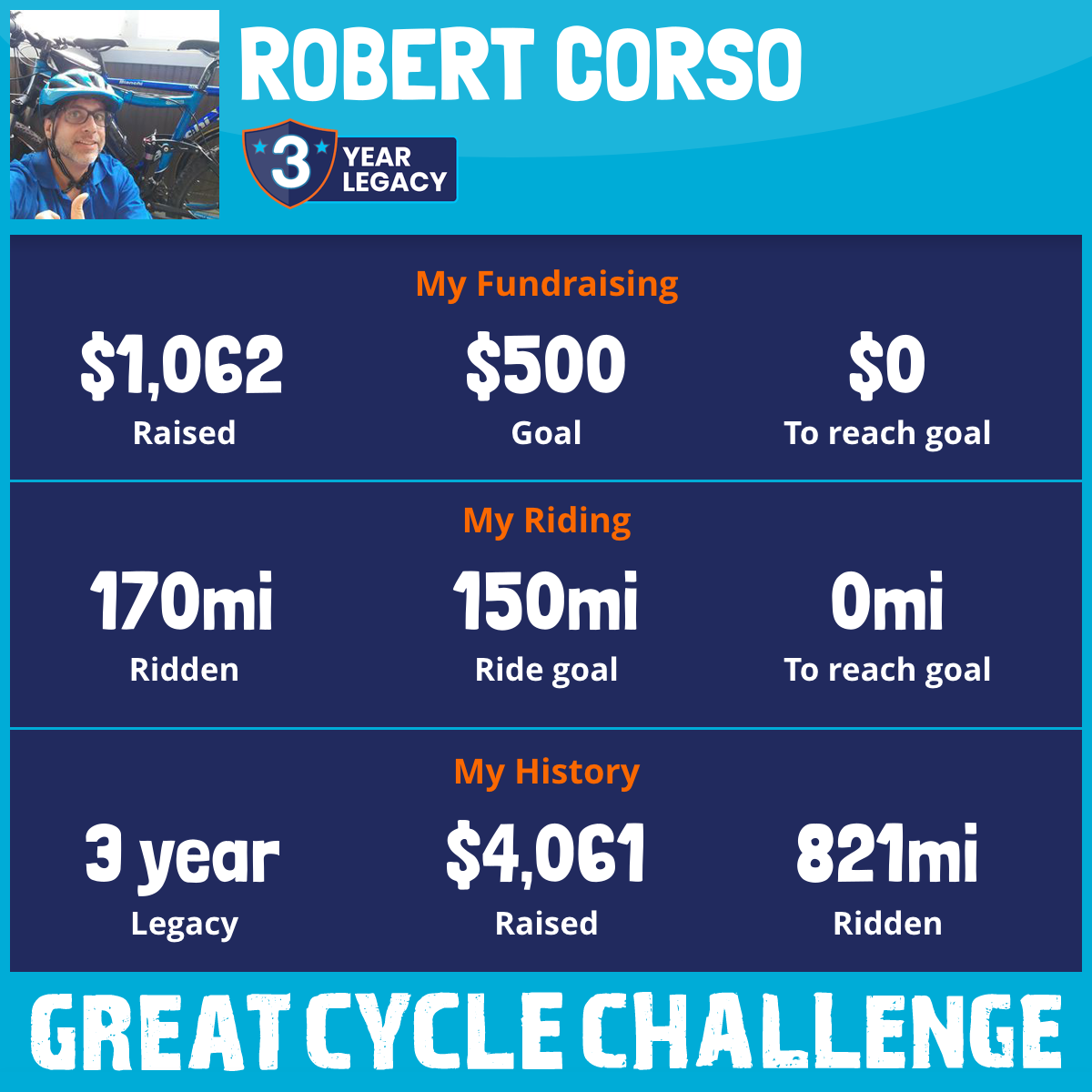170 mi Ridden$1,062 Raised2025
