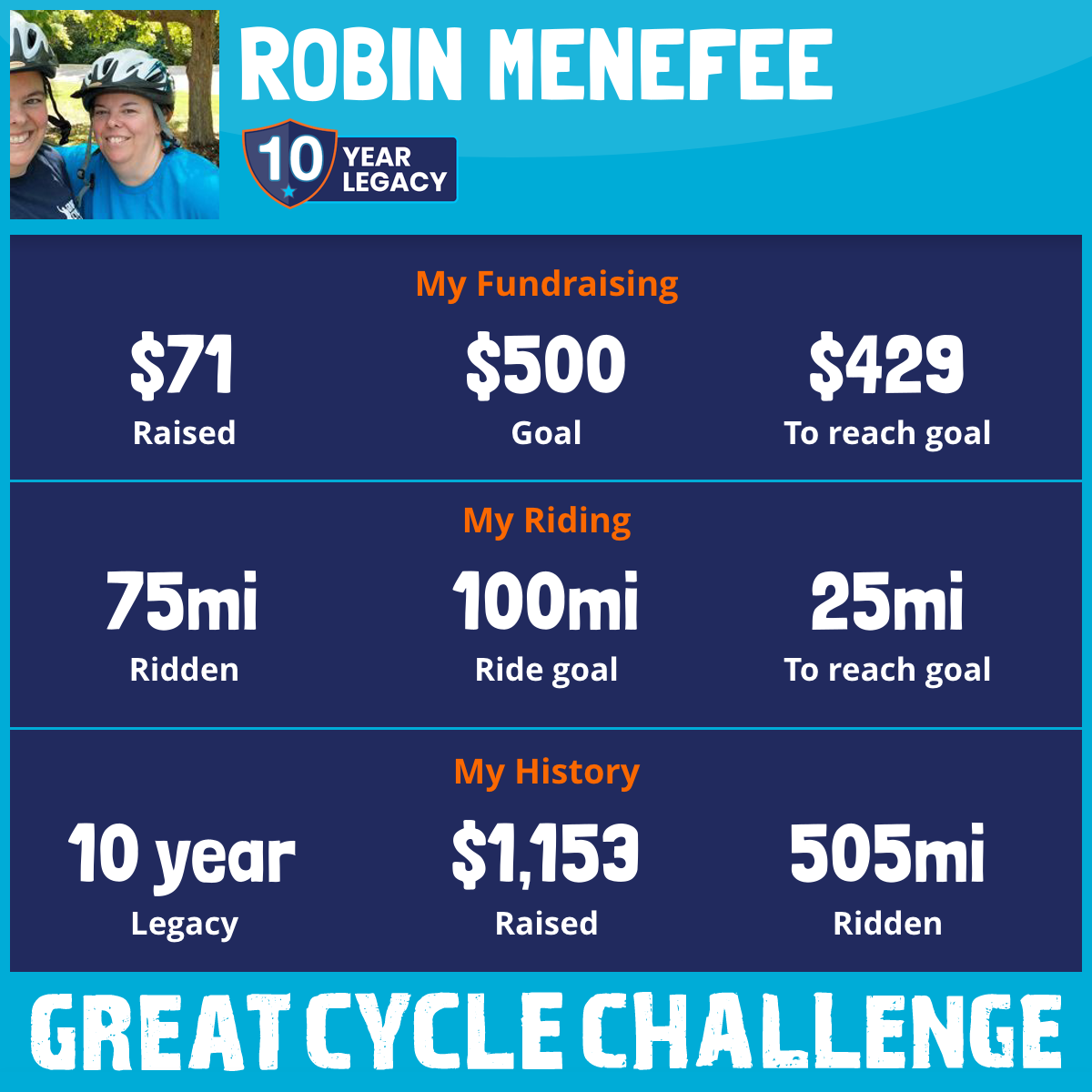 I have participated in the Great Cycle Challenge for 9 years because it supports a cause that is near and dear to my heart.
