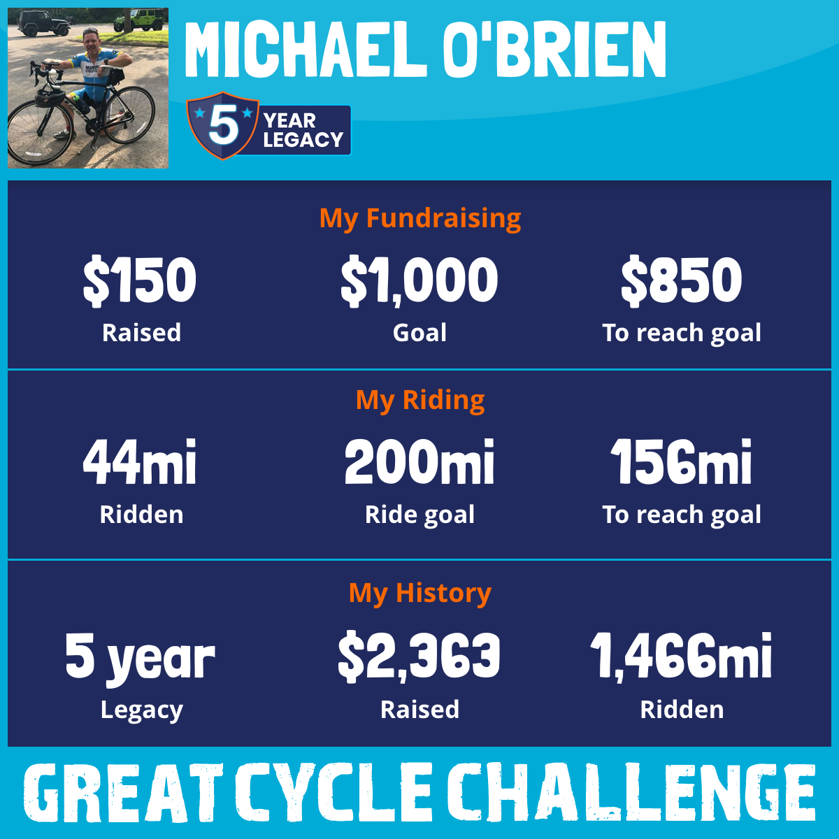 “Way to go Michael! <3 Hope you have a wonderful day riding for a good cause!”