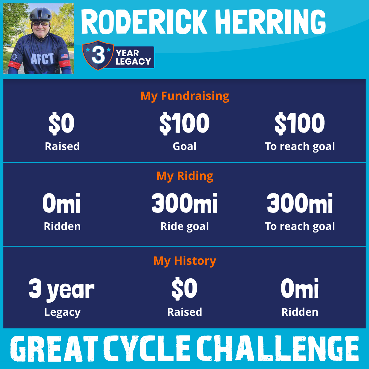 I am riding 300 mi for Ryan Herring. Please sponsor me and support my challenge to fight kids' cancer and save little lives.