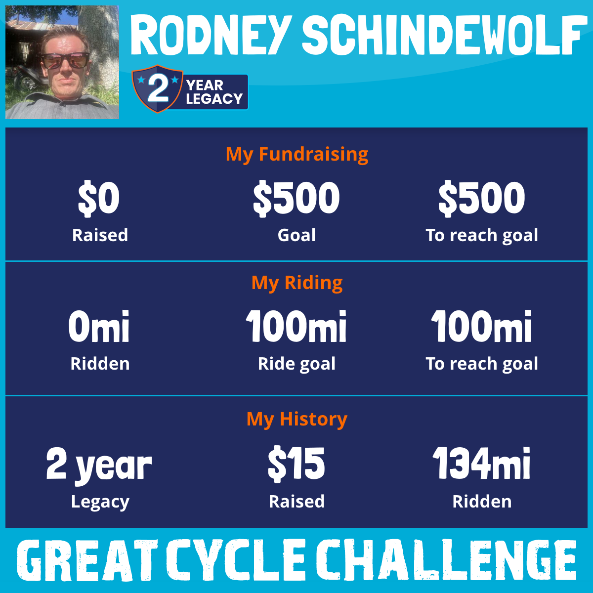 I've raised $0 My goal is $500 Donate Now