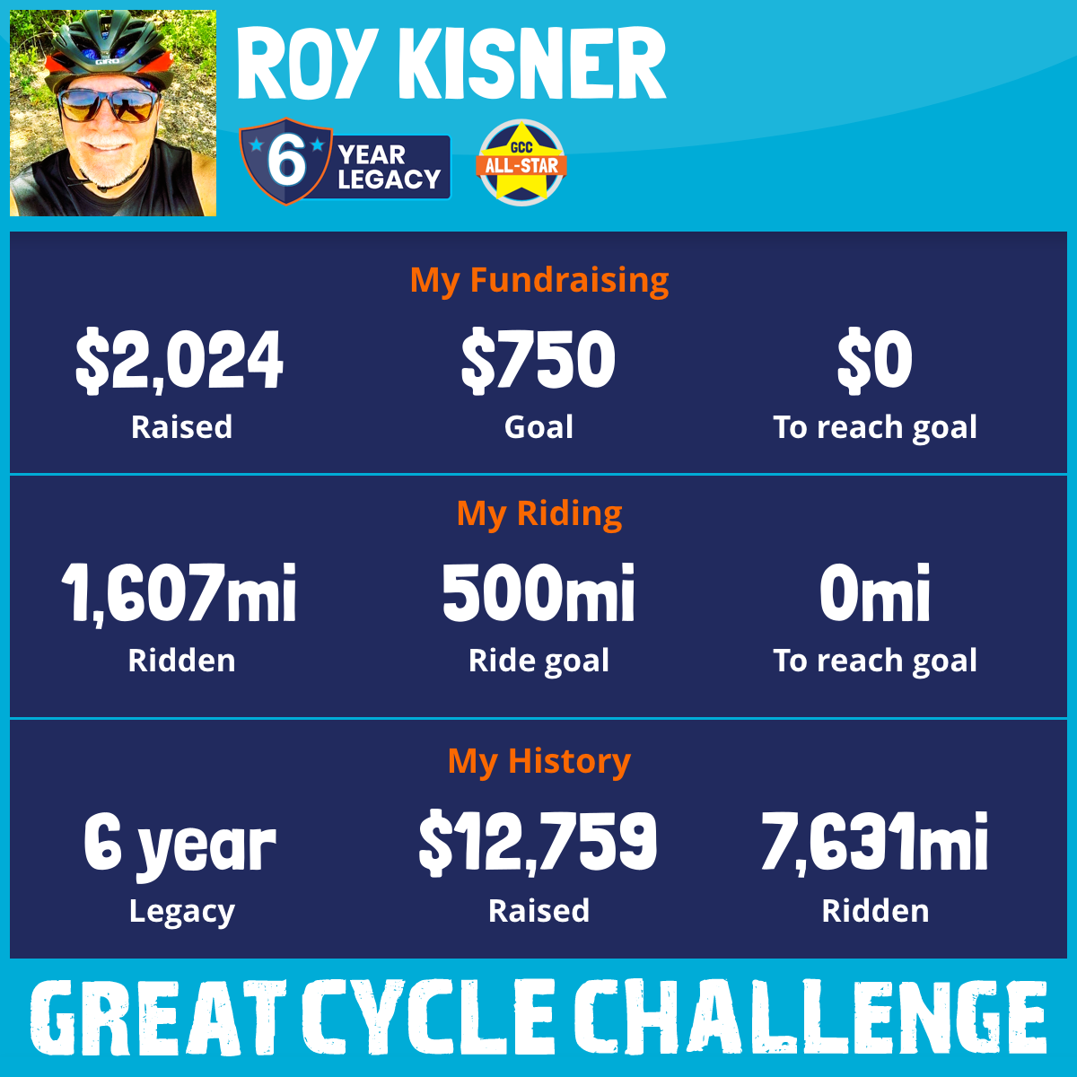 1,607 mi Ridden$2,024 Raised2025