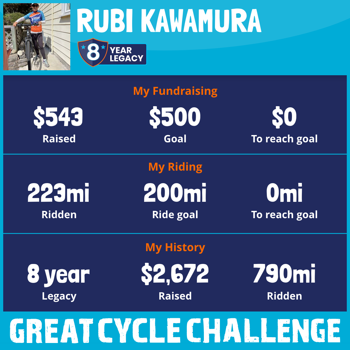 This is my 8th year to take part in the Great Cycle Challenge to fight kids' cancer. In the Bay Area, some potion of raised funds will be sent to UCSF and Stanford Medical Center.