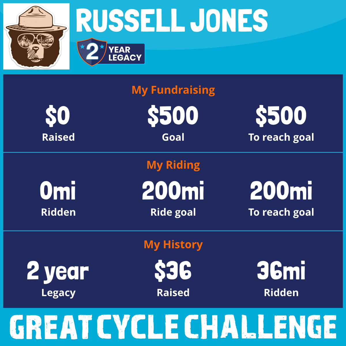 I've raised $0 My goal is $500 Donate Now