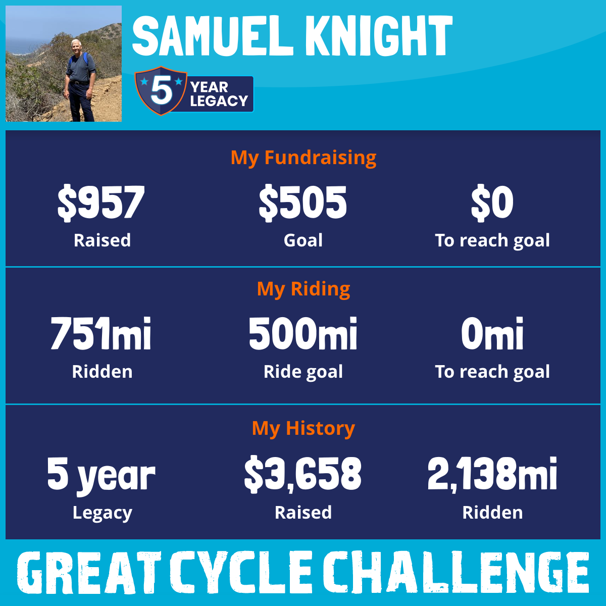 This September thru November, I am taking part in the Great Cycle Challenge to fight kid's cancer.