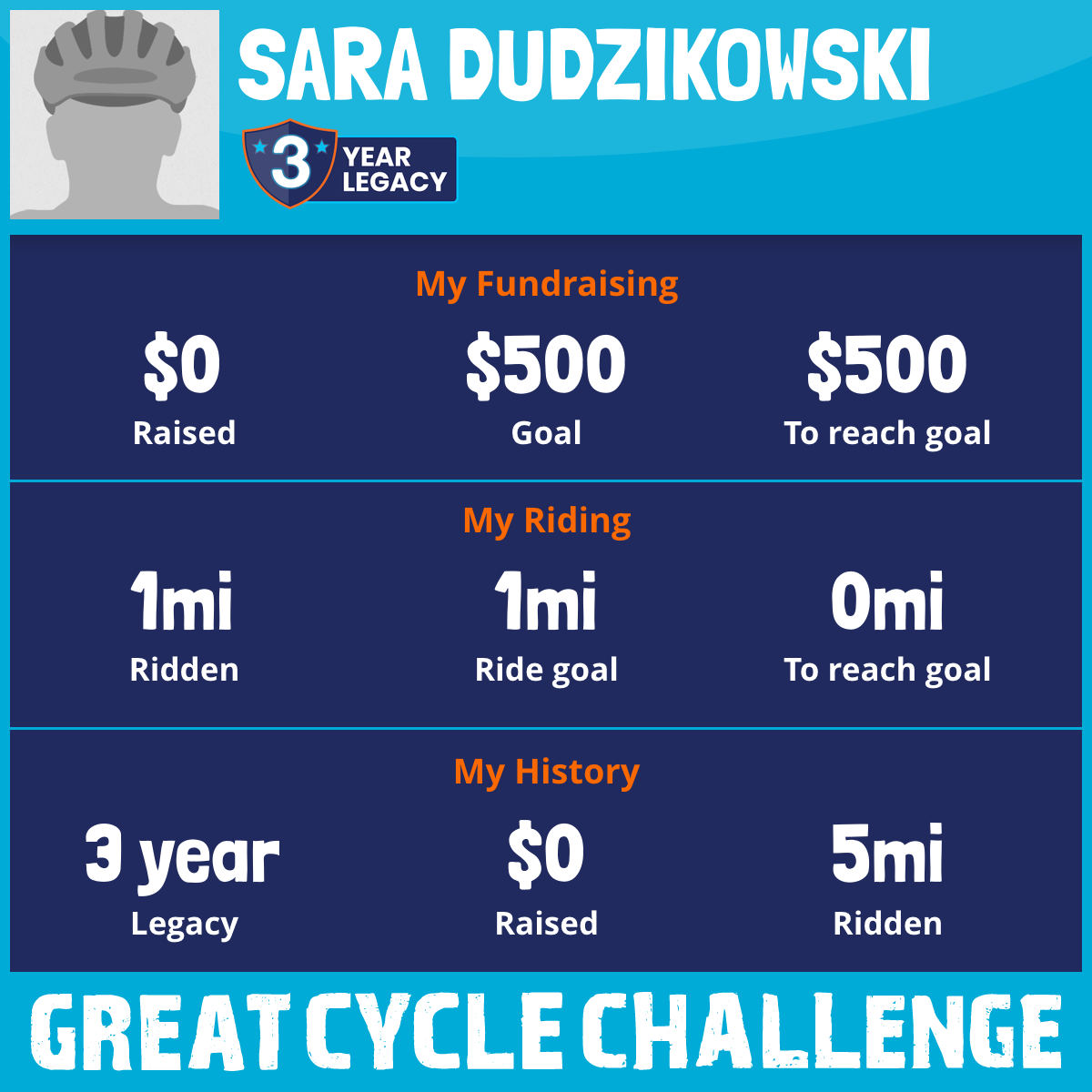 I am riding 1 mi to fight kids' cancer and save little lives. Please sponsor me to support my challenge!