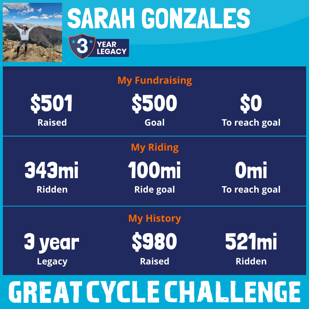 I am riding 100 mi for My Grandmother. Please sponsor me and support my challenge to fight kids' cancer and save little lives.