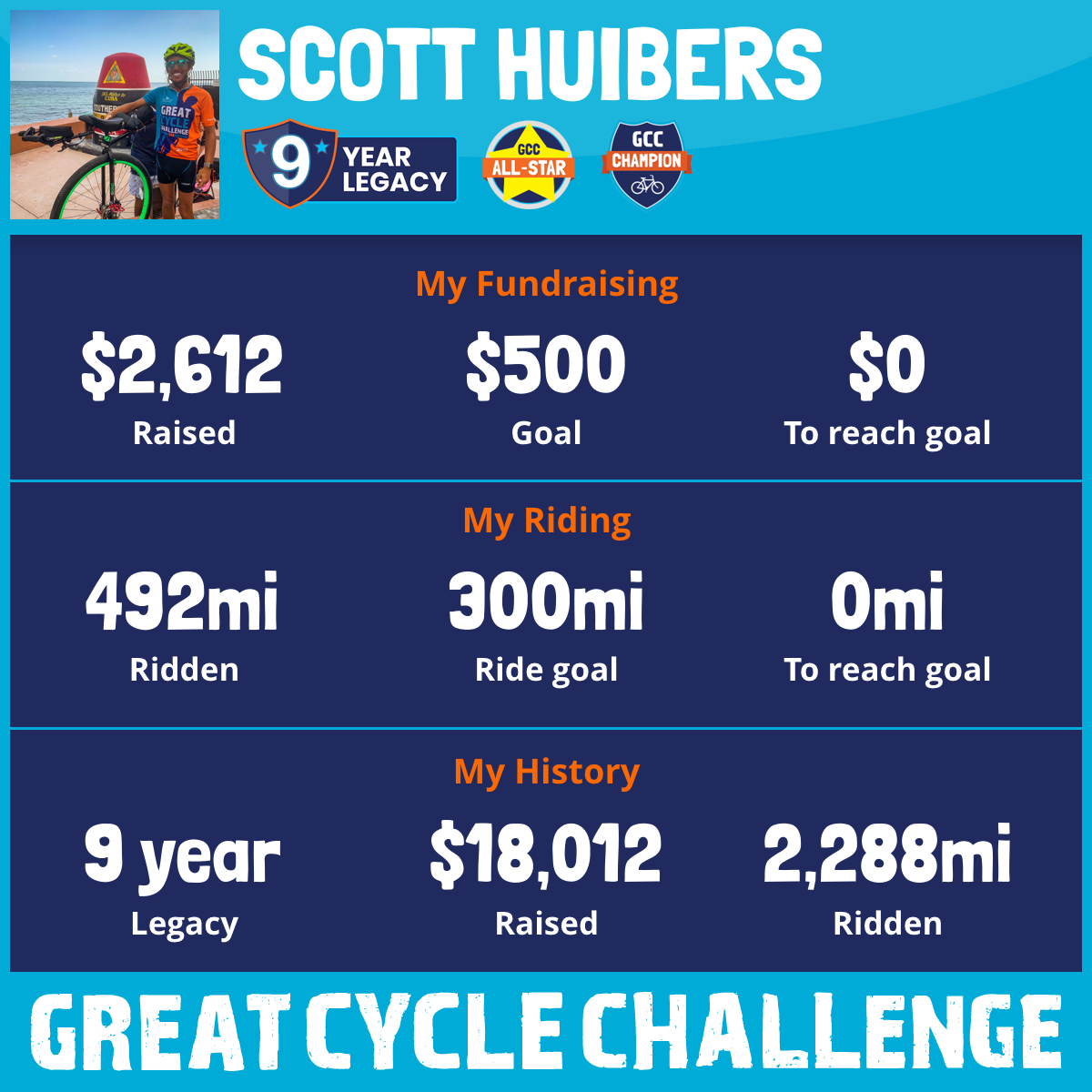 I’ve been part of the Great Cycle Challenge for 9 years now, raising money for children’s cancer research. So far, I’ve unicycled more than 1,700 miles and raised over $15,000 to help kids get the care they need.