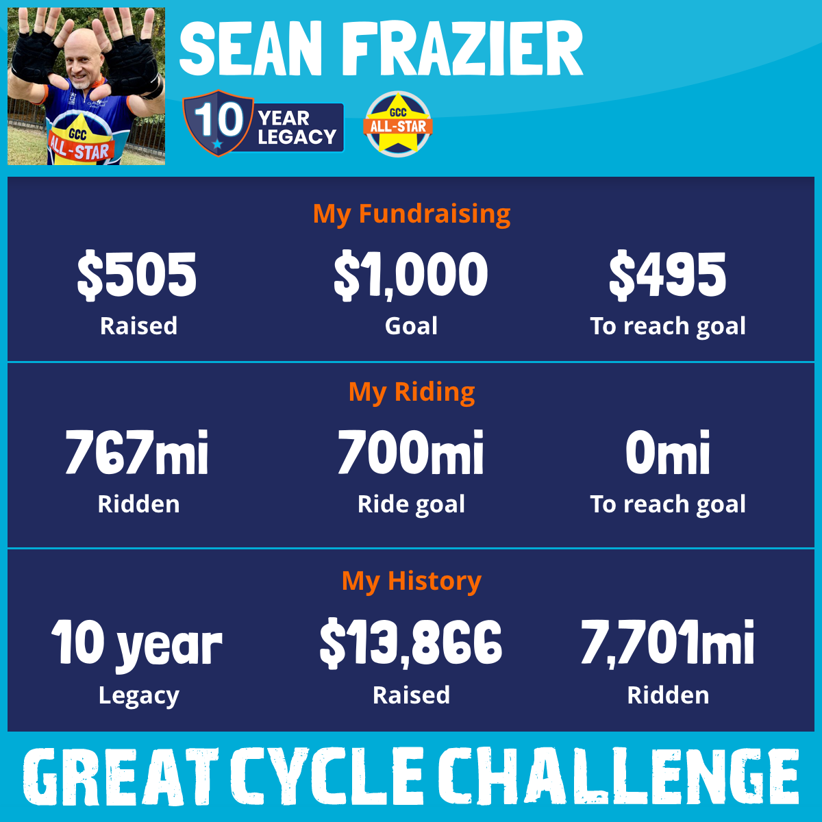 Penultimate day of GCCUSA to raise money for The Children’s Cancer Research Fund!! Please donate at the link in my bio or at https://greatcyclechallenge.com/Riders/SeanFrazier