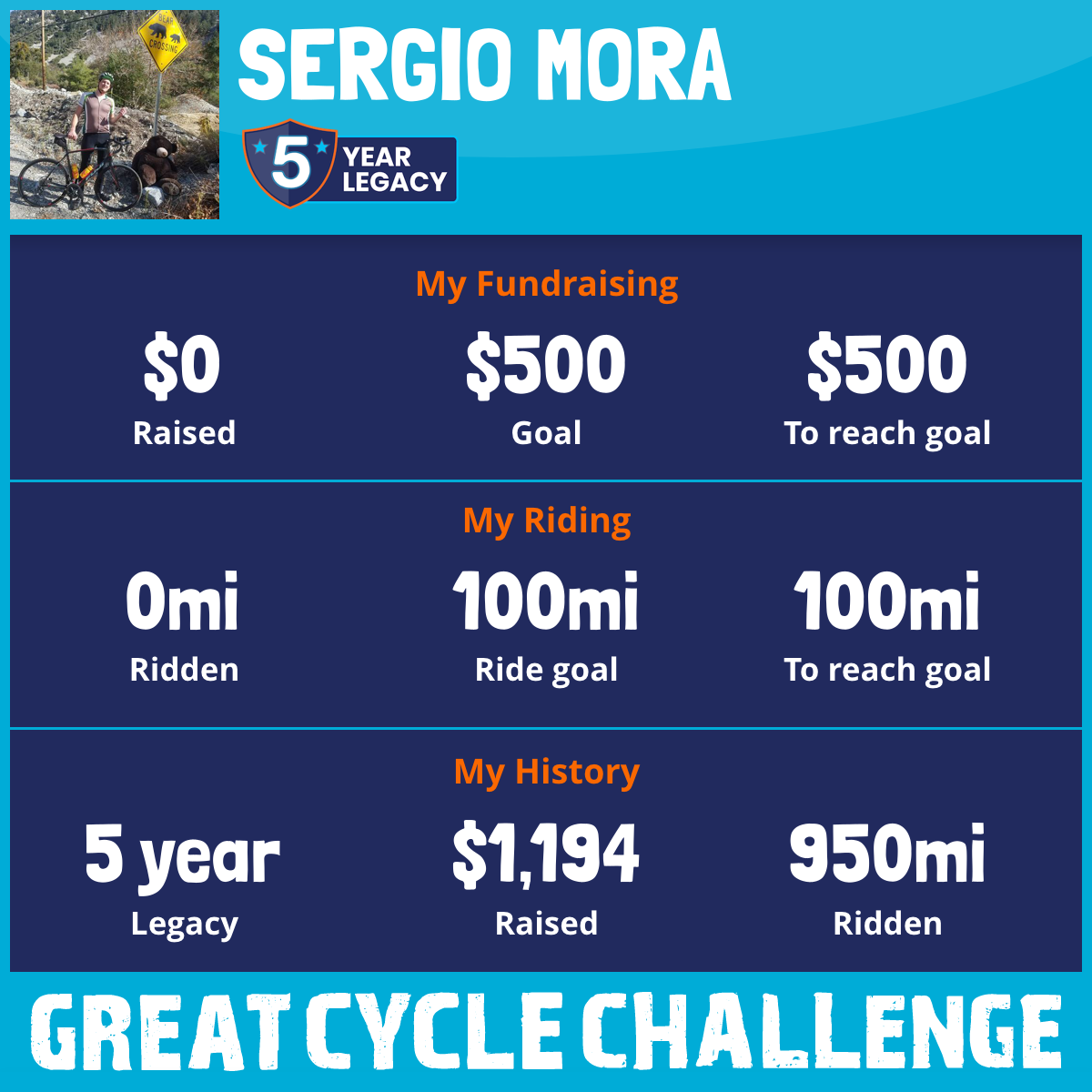 I've raised $0 My goal is $500 Donate Now