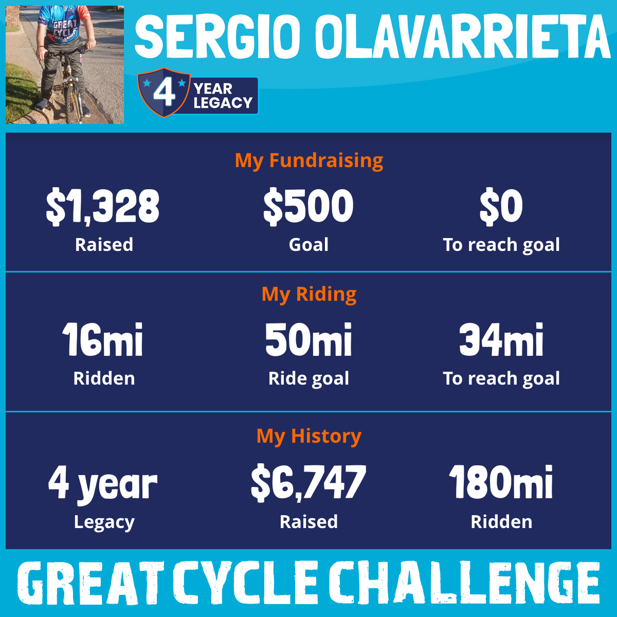 I've raised $0 My goal is $500 Donate Now