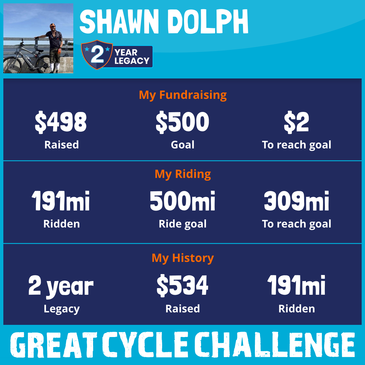 191 mi Ridden$498 Raised2025