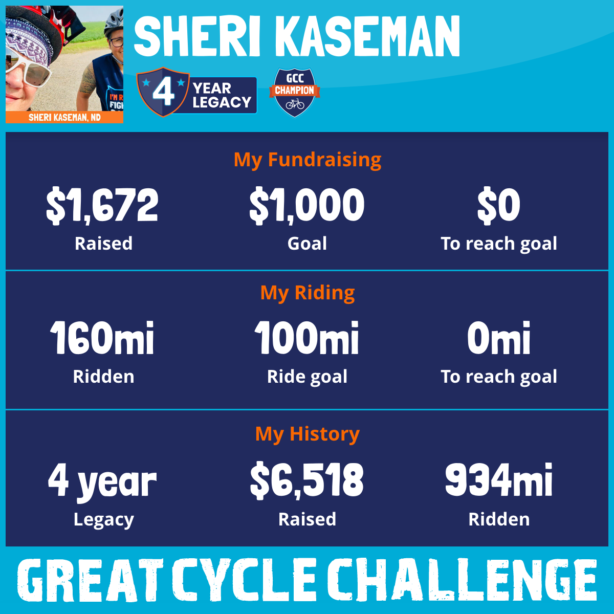 160 mi Ridden$1,672 Raised2025