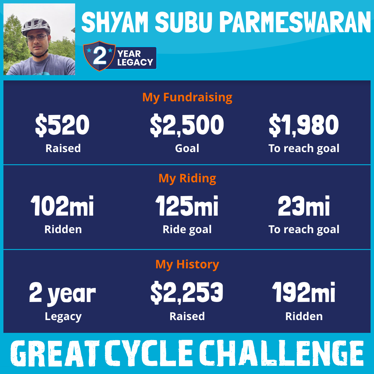I am riding 125 mi in September to raise money for CCRF (Children's cancer research fund). Please donate to support my challenge!
