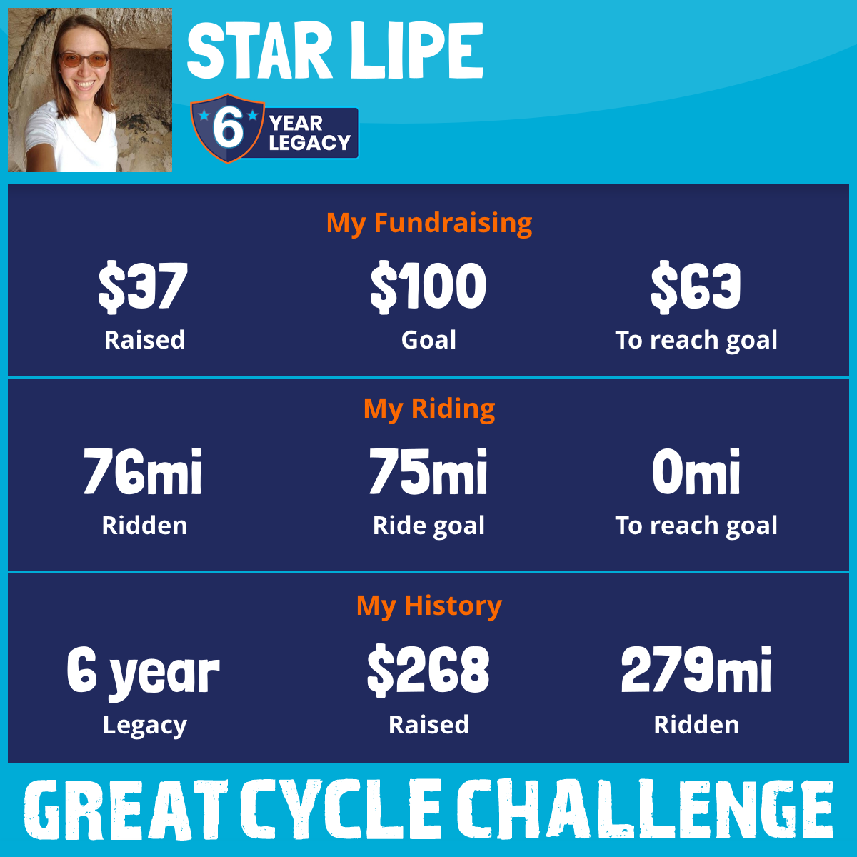 I am riding 75 mi to fight kids' cancer and save little lives. Please sponsor me to support my challenge!