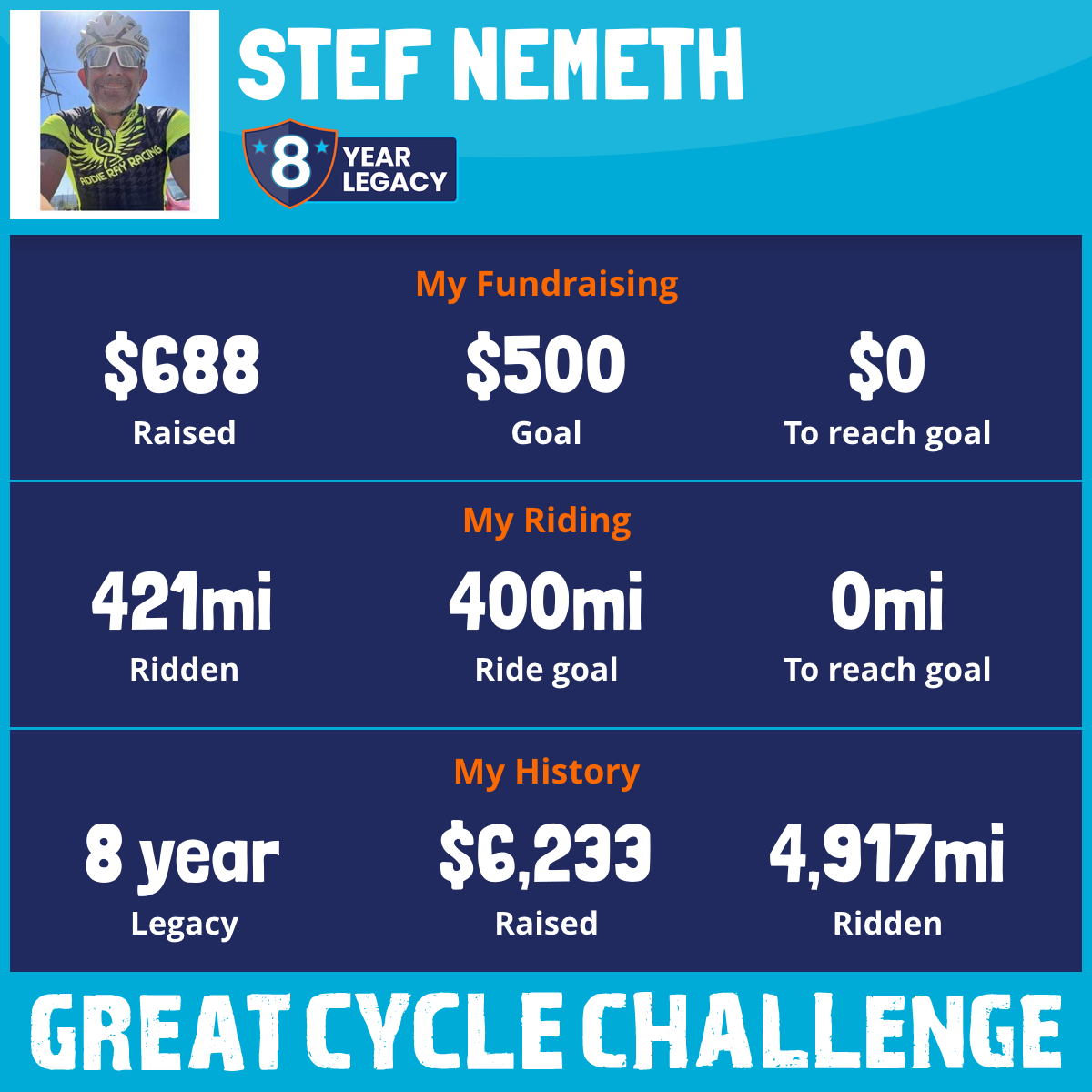 I am riding 400 mi to fight kids' cancer and save little lives. Please sponsor me to support my challenge!