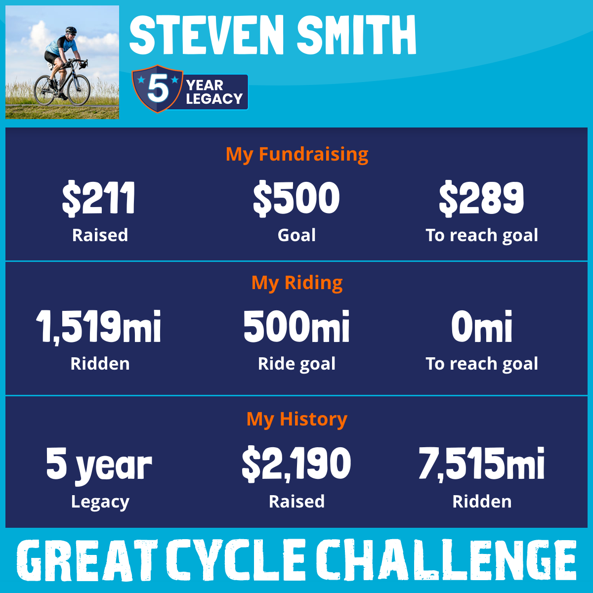 Last year we raised over $1000 dollars together and I was able to ride 1000+ miles. This year I believe we can do 1,000 miles for the month of September again!