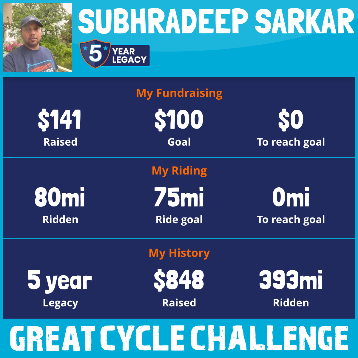 I am riding 75 mi in memory of In Memory of Deves. Please sponsor me and support my challenge to fight kids' cancer and save little lives.