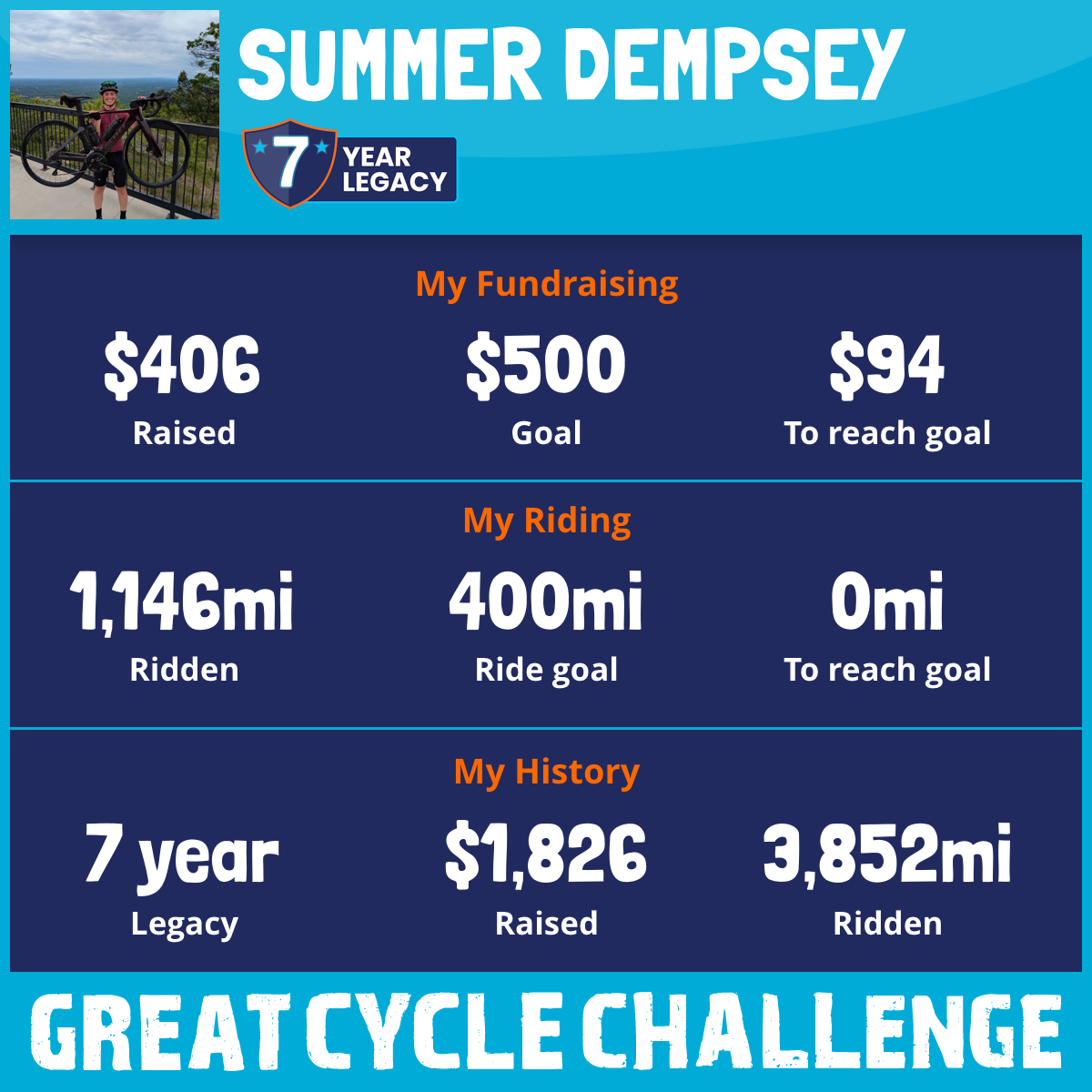 1,146 mi Ridden$406 Raised2025