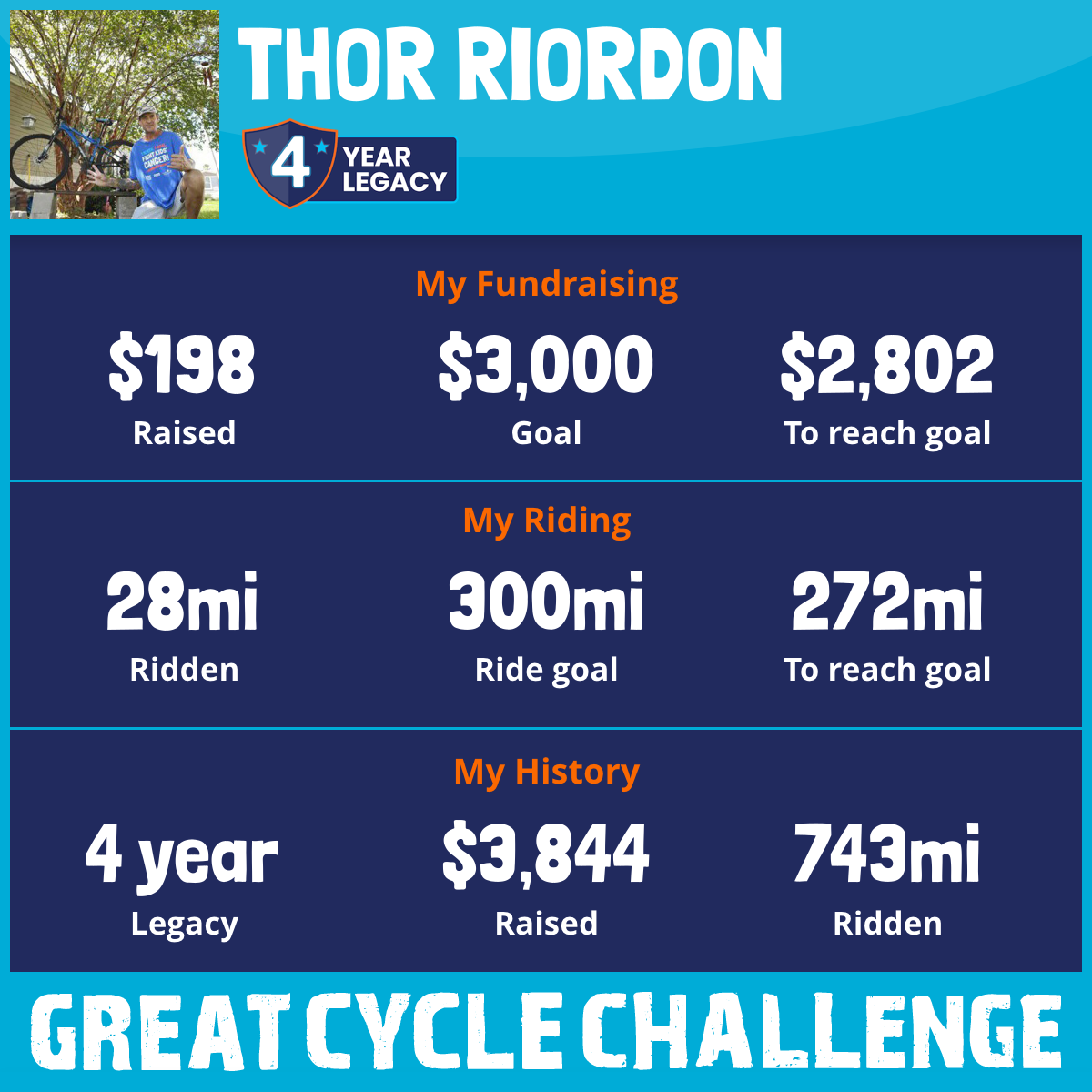 So Honored and BLESSED and Excited to ride again this year. I have lost many friends and family to cancer, and also ride for those who continue to fight. This is just such a good cause and I can't ignore my ability to help a little, at least do my small part. I love ridin my bike still, gettin old but I will continue to bring that same commitment to this effort for all the Kids who can not.