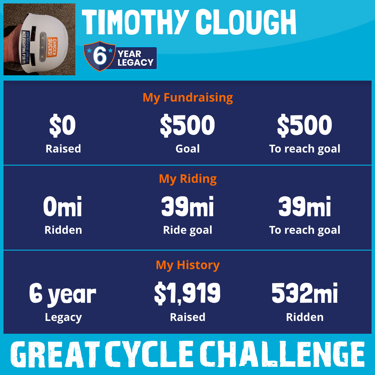 I am riding 39 mi in memory of Patricia Clough. Please sponsor me and support my challenge to fight kids' cancer and save little lives.