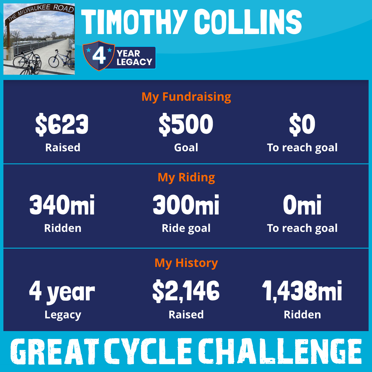340 mi Ridden$623 Raised2025