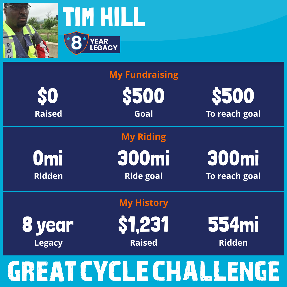 I've raised $0 My goal is $500 Donate Now