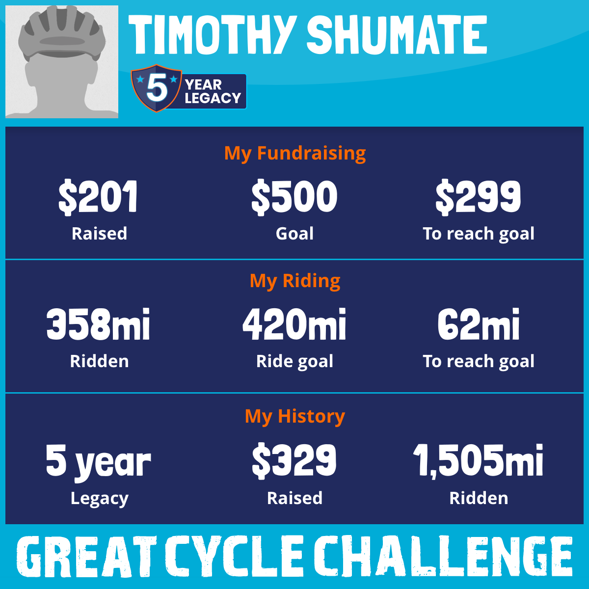 I am riding 420 mi to fight kids' cancer and save little lives. Please sponsor me to support my challenge!