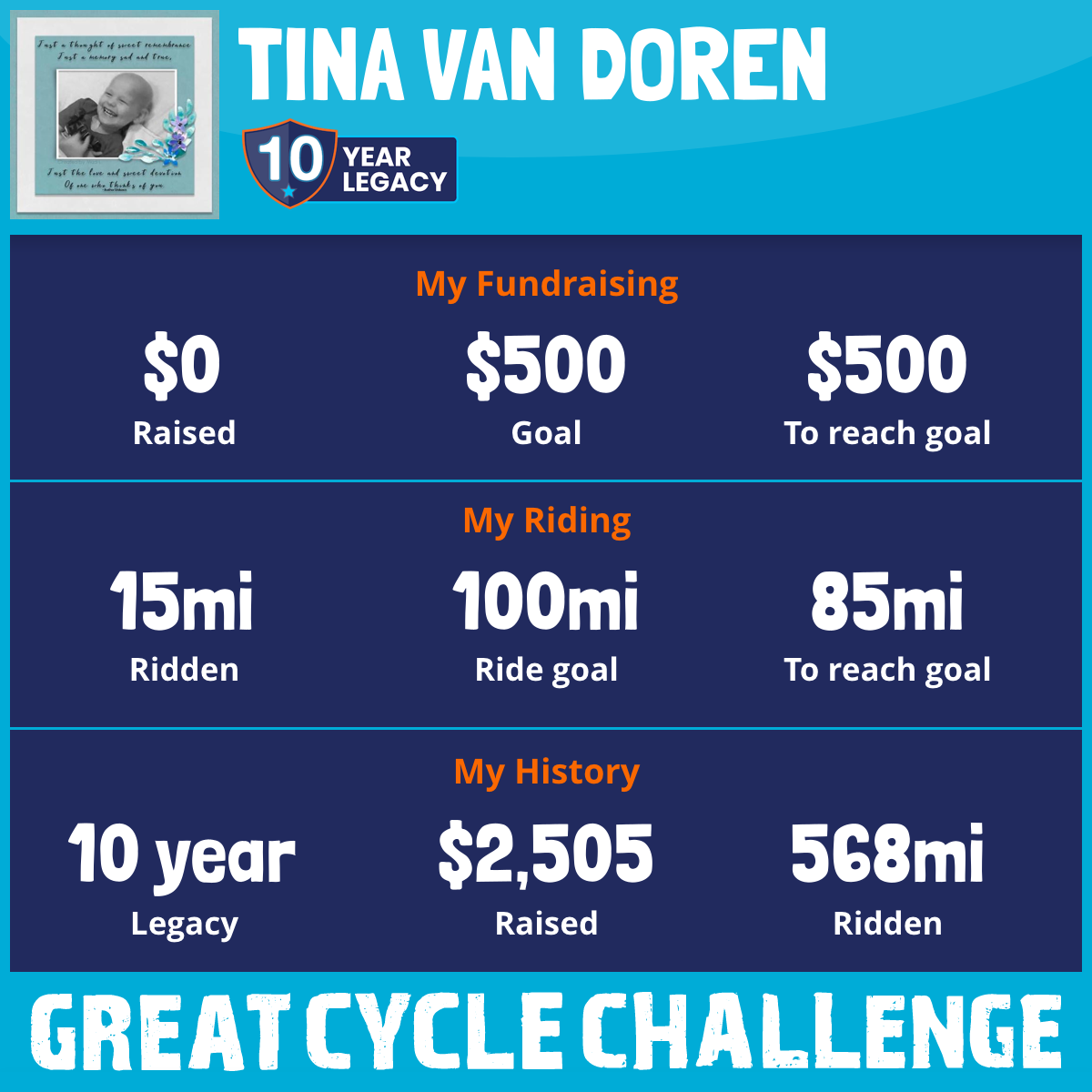 I am riding 100 mi in memory of Logan D Ressler Brown. Please sponsor me and support my challenge to fight kids' cancer and save little lives.