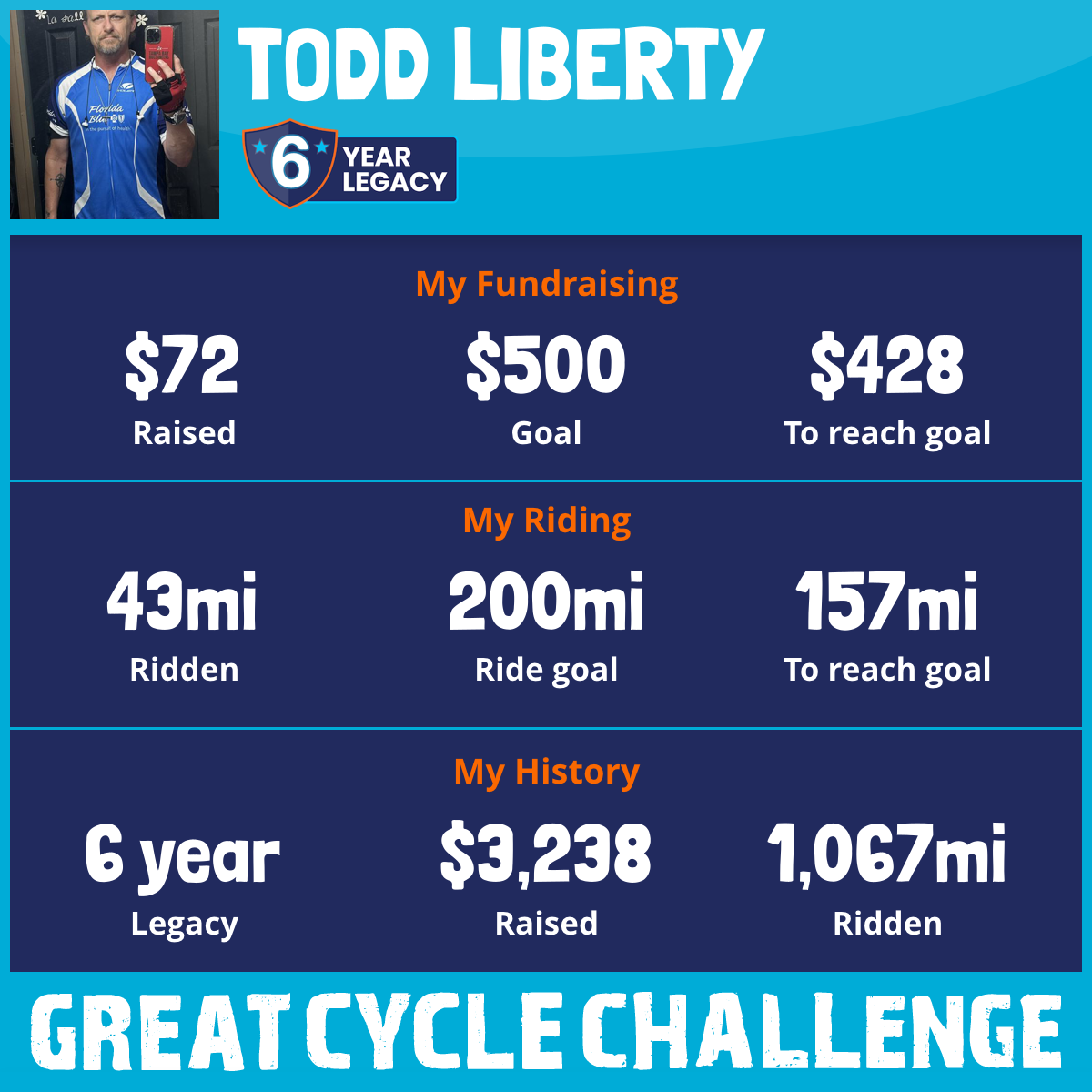 43 mi Ridden$72 Raised2025