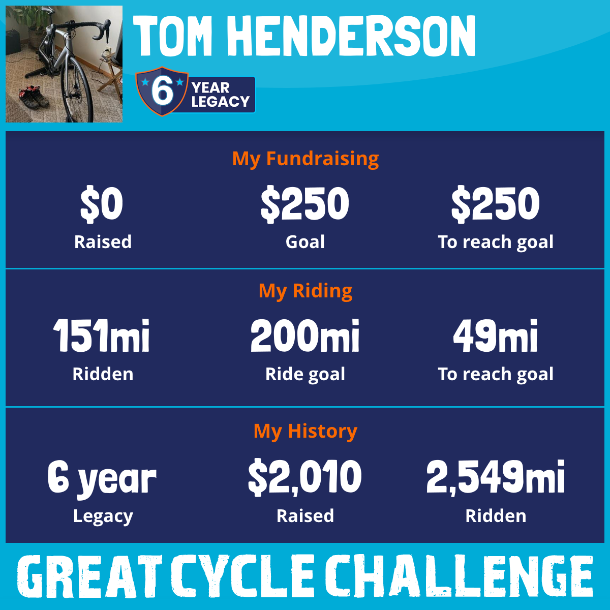 I am riding 200 mi to fight kids' cancer and save little lives. Please sponsor me to support my challenge!