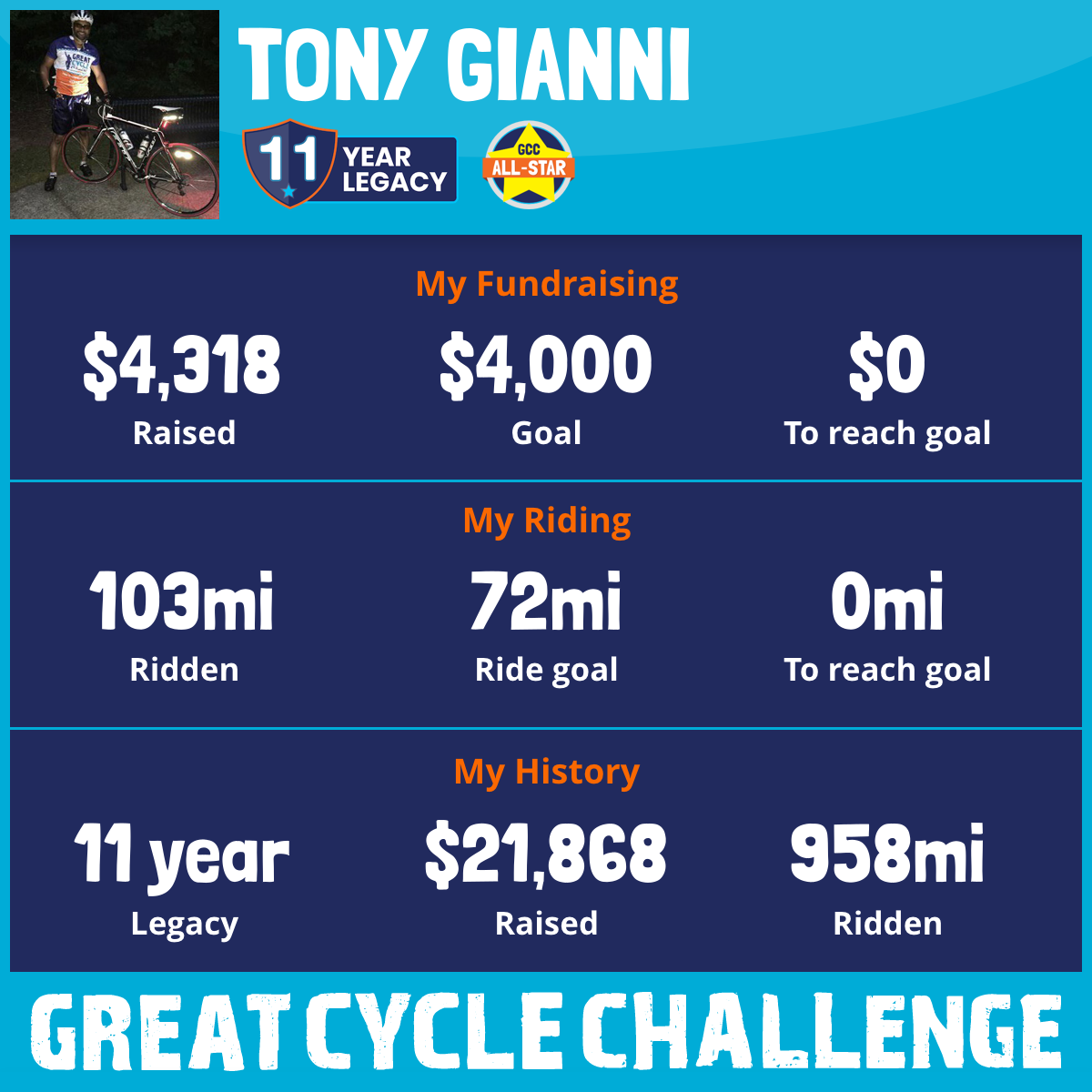 For approximately 11 years I’ve been taking part in the Great Cycle Challenge to raise funds to fight kids' cancer!