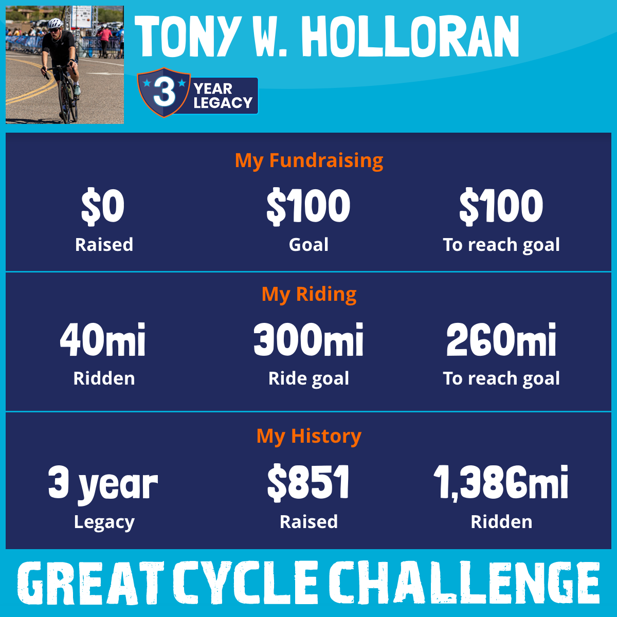 I am riding 300 mi in memory of Bill Holloran Sr.. Please sponsor me and support my challenge to fight kids' cancer and save little lives.