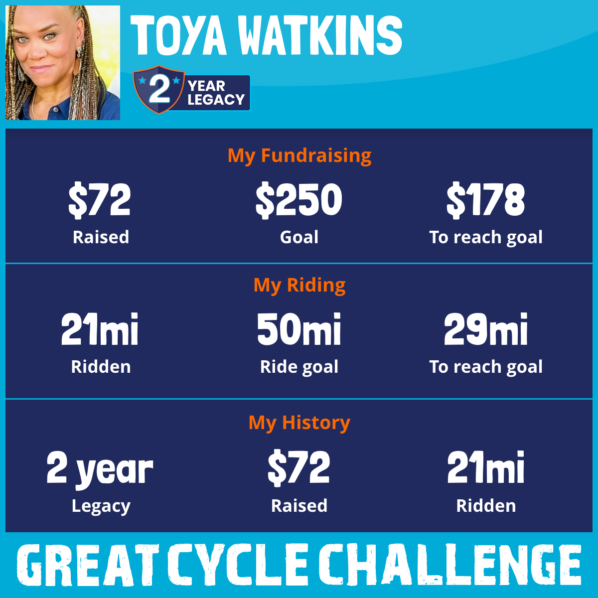 21 mi Ridden$72 Raised2025