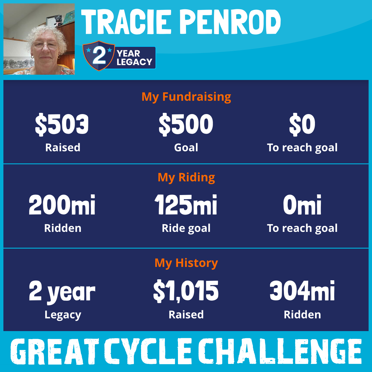 I am riding 200 mi in memory of Douglas Penrod. Please sponsor me and support my challenge to fight kids' cancer and save little lives.