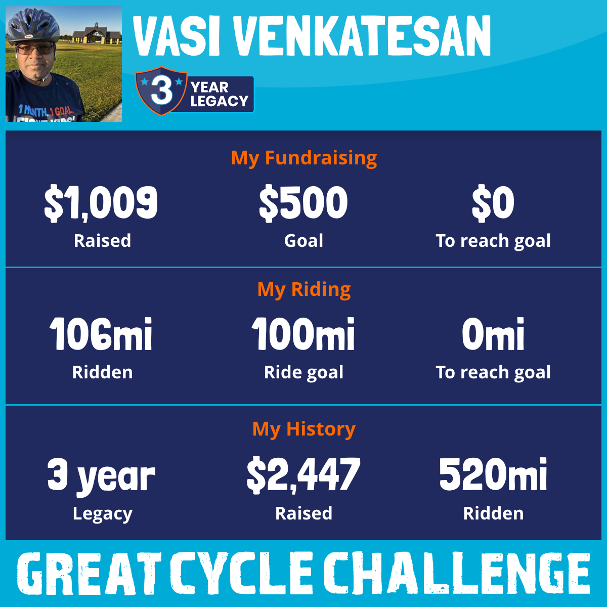 106 mi Ridden$1,009 Raised2025