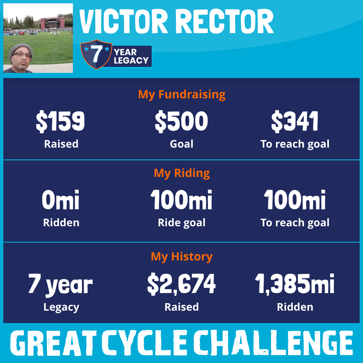 I've raised $0 My goal is $500 Donate Now