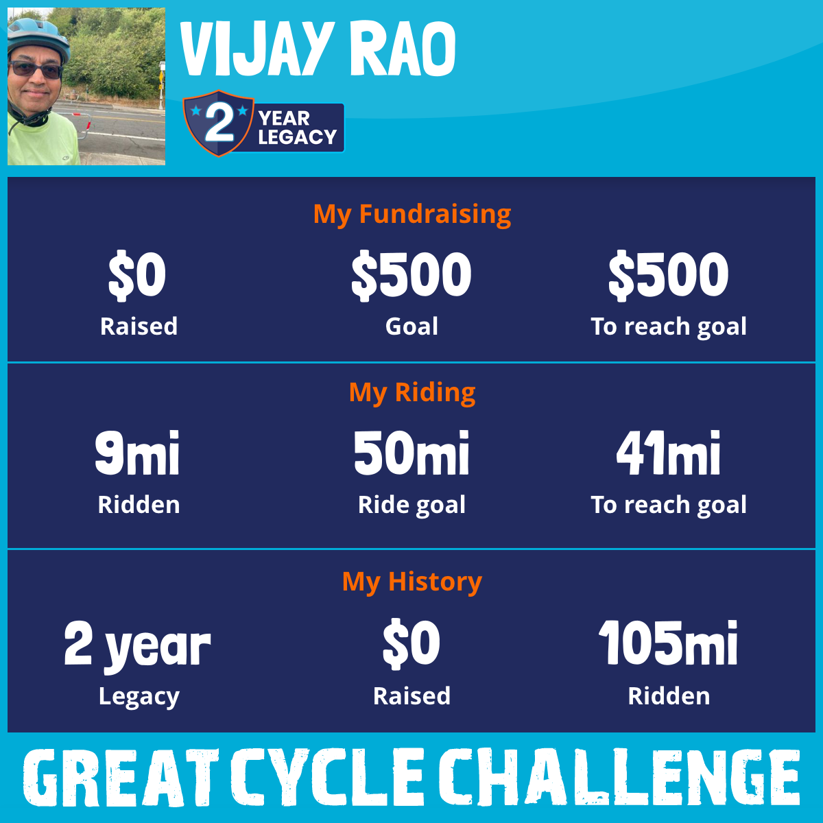 I am riding 50 mi in memory of my friend, Varun Suraj Verma. Please sponsor me and support my challenge to fight kids' cancer and save little lives.
